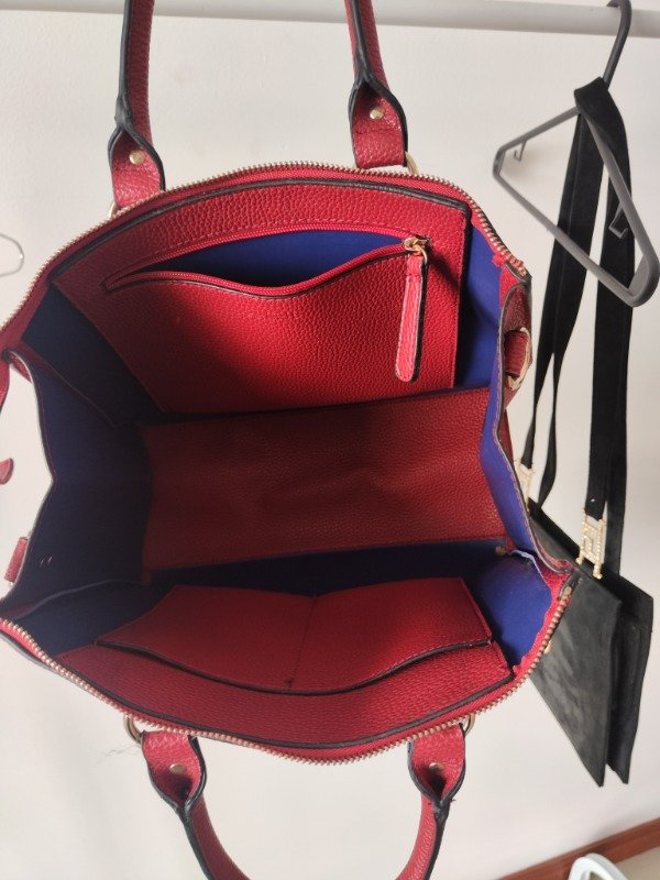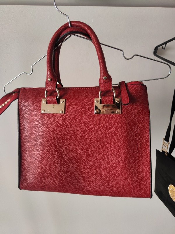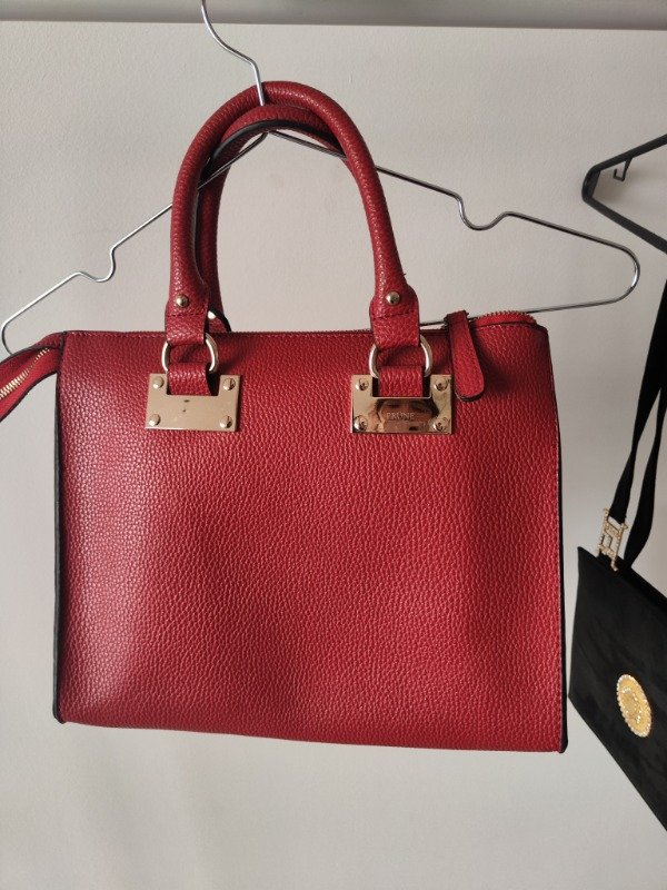 Cartera divina de Prune en color rojo con herrajes dorados. Cuenta con un compartimento super amplio, un bolsillo y un bolsillo con cierre. Está en perfectas condiciones. Tiene herraje para agregarle una correa larga.