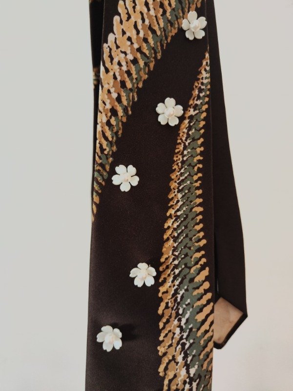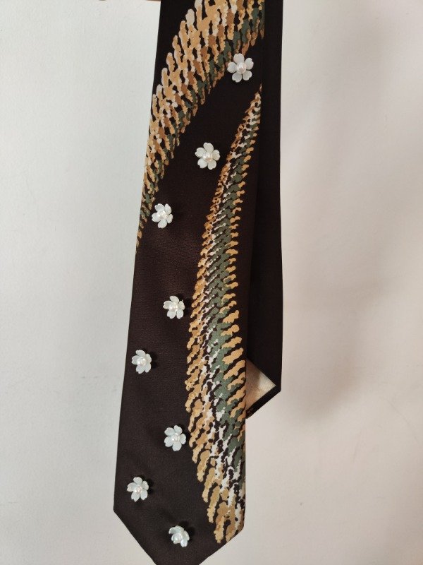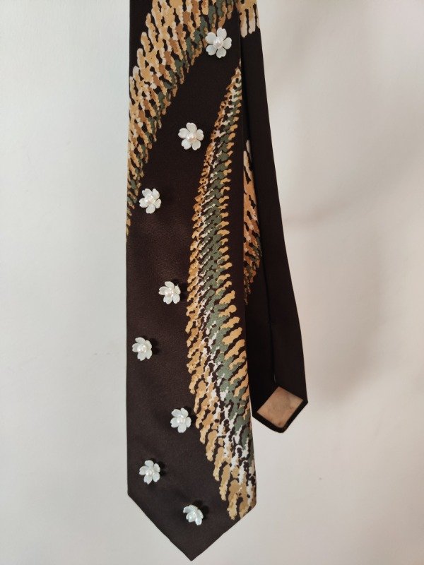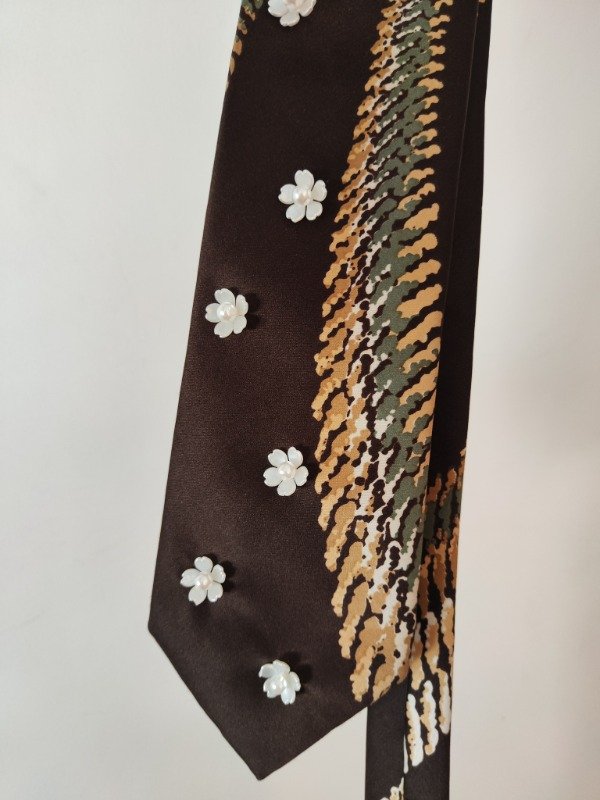 Hermosa corbata vintage intervenida a mano, unica, de la marca Gianni Binda Italia con florcitas bordadas.