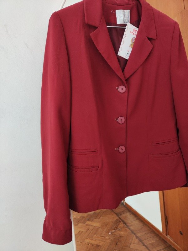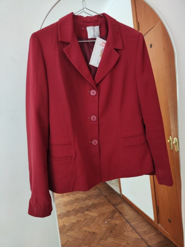 Saco divino en color bordo forrado con botones al centro y bolsillos a los costados. Para media estacion. En perfectas condiciones, con lavado en tintoreria!