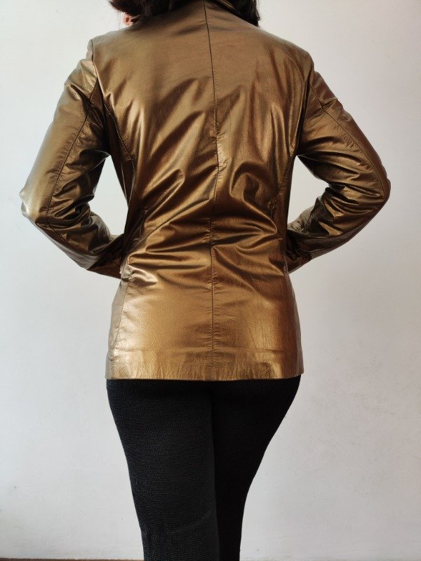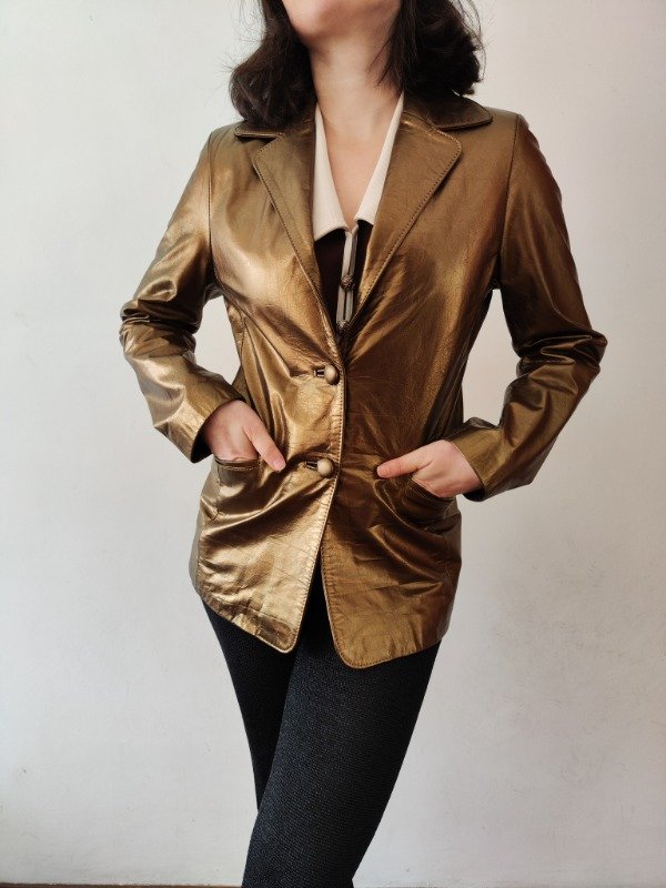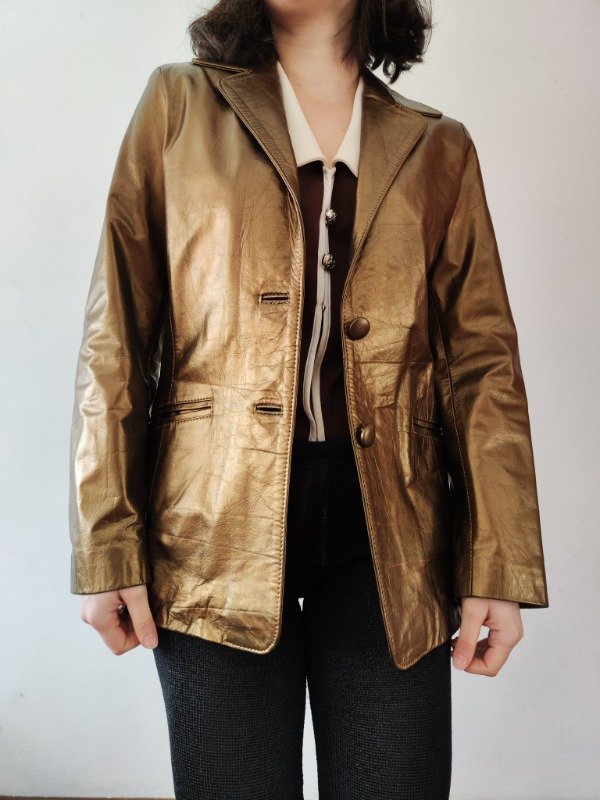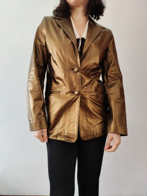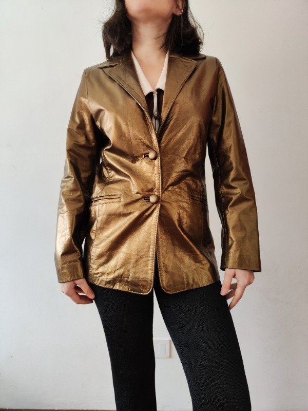Saco espectacular de cuero genuino en color dorado (sisi, dorado amor), super espectacular, con botones y bolsillos a los costados. Está enteramente forrado! Una pieza única y en perfecto estado. Marca American Leathers